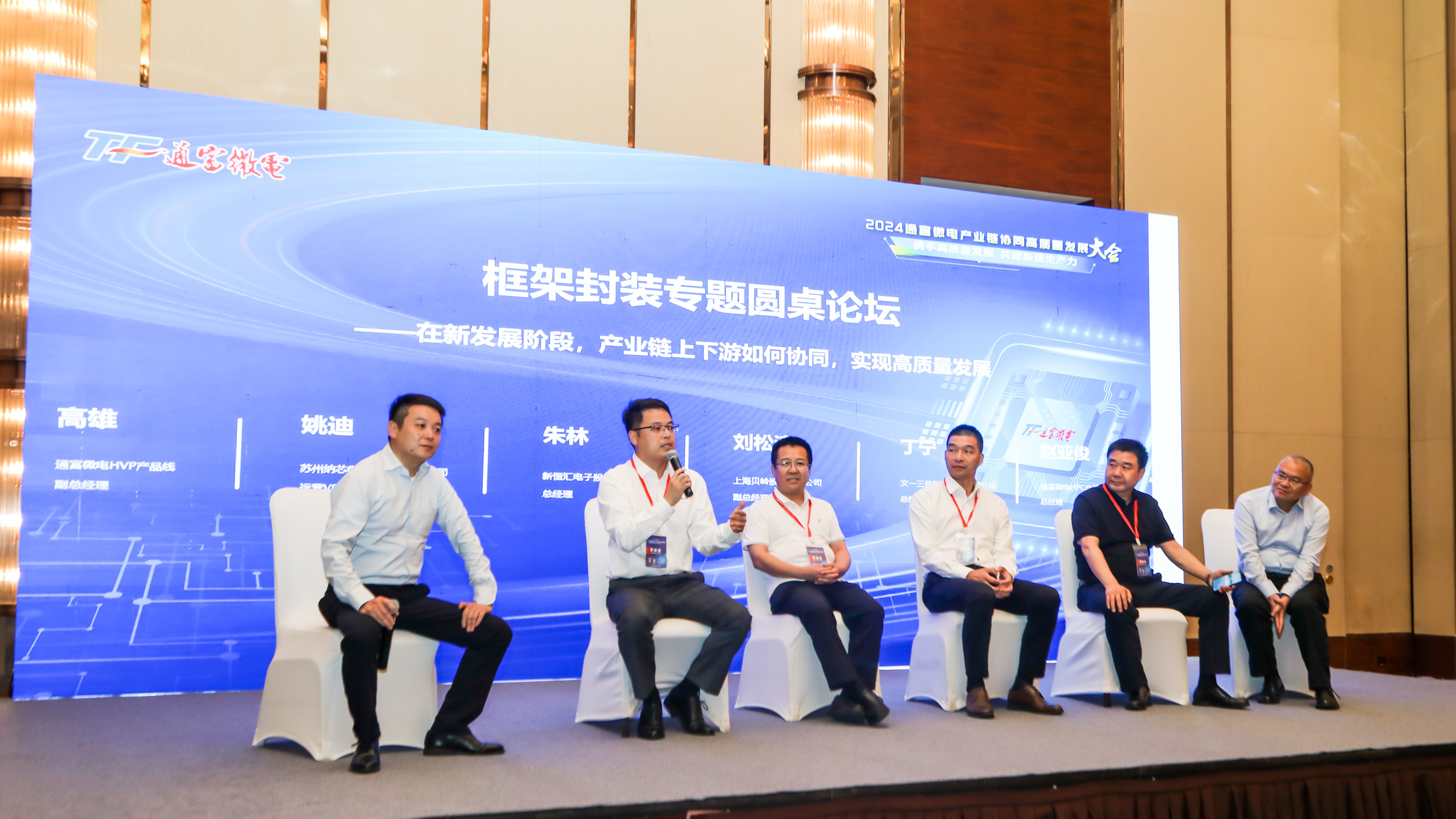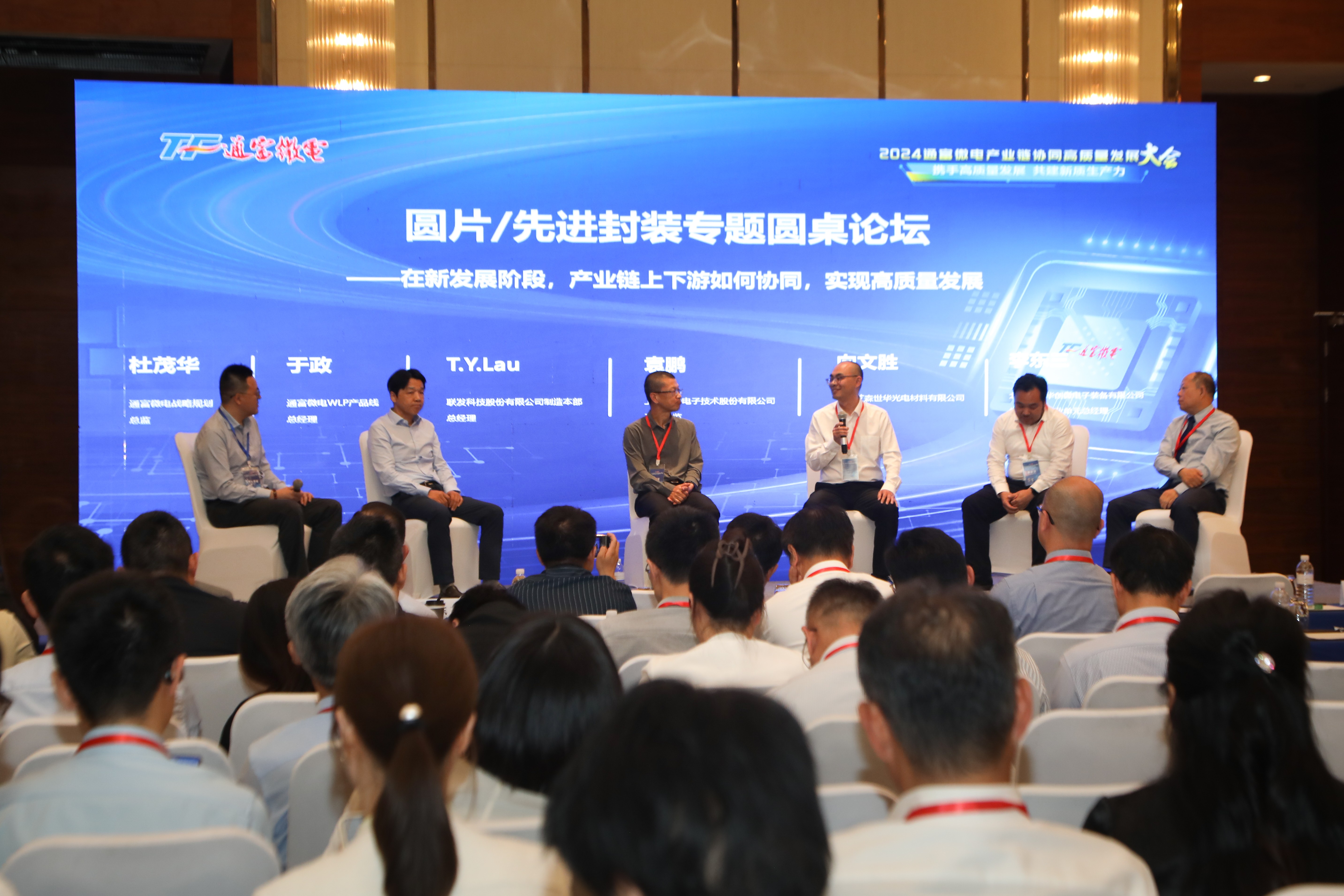 【概要描述】 6月18日,2024通富微电产业链协同高质量发展大会在南通滨江洲际酒店隆重召开。苏锡通科技产业园区党工委副书记、管委会主任黄晓峰,南通市北高新区党工委副书记、管委会主任丁志祥,苏锡通科技产业园区党工委委员顾伟,南通市北高新区党工委委员、管委会副主任徐敬厂,通富微电董事长兼总裁石磊,通富微电名誉董事长、副董事长石明达,通富微电常务副总裁、营运长夏鑫以及来自全球各地的客户代表、供应商代表、金融界代表等500多人出席大会。